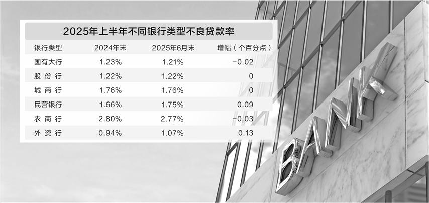 2025年上半年,全国多数地区银行资产质量保持稳健,其中国有大行、股份制银行不良率分别为1.21%和1.22%,较2025年初均有所下降或持平。