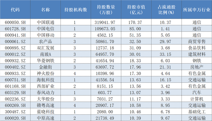 表格:2025年中报保险公司持仓市值超过10亿元个股名单(截至8月19日)