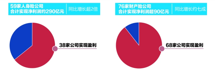 从盈利机构数量来看,人身险业有38家公司实现盈利,占比超六成;财产险业有68家公司实现盈利,占比约九成。人身险业和财产险业盈利公司数量均较去年同期明显增长。