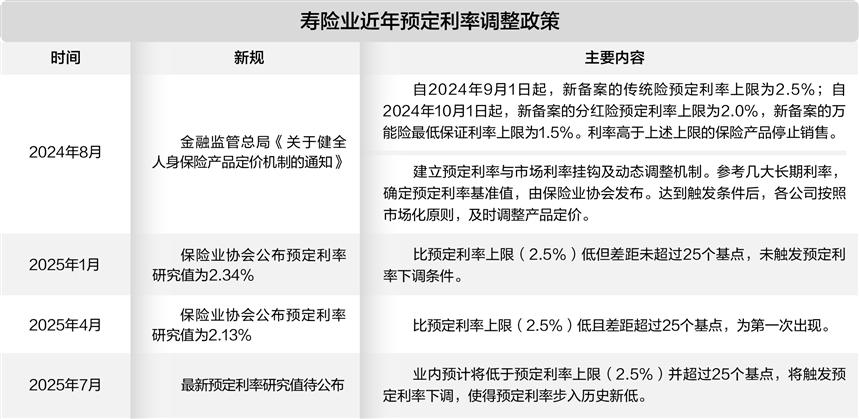 今年1月,中国保险行业协会(下称“保险业协会”)组织召开人身保险业责任准备金评估利率专家咨询委员会例会,认为当前普通型人身保险产品预定利率研究值为2.34%。今年4月发布的普通型人身保险产品预定利率研究值为2.13%,低于当前预定利率上限(2.5%)超25个基点。由于未触发“在售普通型人身保险产品预定利率最高值连续2个季度比预定利率研究值高25个基点及以上”条件,我国人身保险产品预定利率彼时未调整。