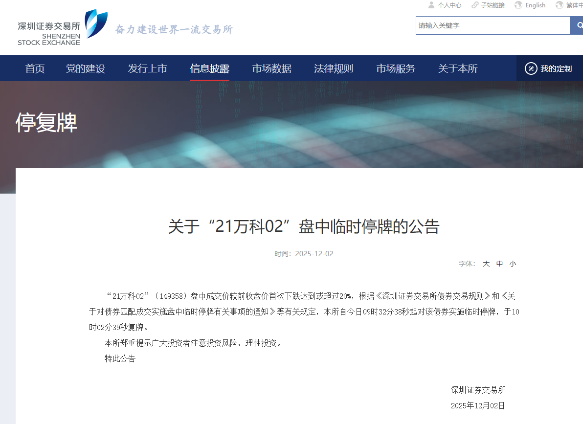 上证报中国证券网讯据深交所2日消息泰州钢绞线价格表,“21万科02”(149358)盘中成交价较前收盘价首次下跌达到或超过20%,根据《深圳证券交易所债券交易规则》和《关于对债券匹配成交实施盘中临时停牌有关事项的通知》等有关规定,深交所自今日09时32分38秒起对该债券实施临时停牌,于10时02分39秒复牌。