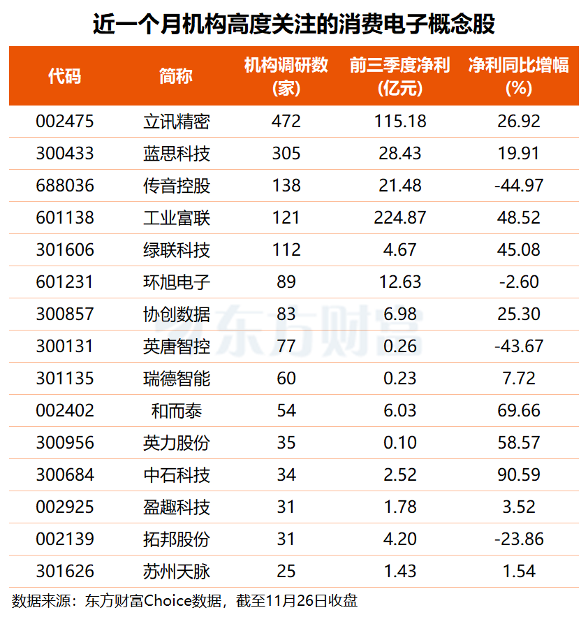 中国银河证券研报指出,消费电子板块经调整后已有性价比。数据显示,iphone17销量同比大幅增长,建议关注果链相关标的低位布局机会。可持续关注AI眼镜等新型消费电子品类投资机会。