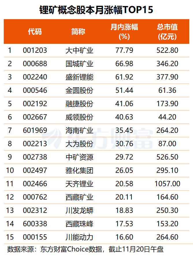 锂矿概念股早盘反复活跃,大为股份、威领股份封涨停,大中矿业、盛新锂能一度封板,国城矿业、融捷股份、中矿资源、盐湖股份等多股跟涨。