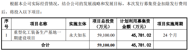 读创财经注意到,根据永大股份招股书(申报稿),本次IPO拟募资6.08亿元,其中5.58亿元用于重型化工装备生产基地一期建设项目 ,5000万元用于补充流动资金。而在永大股份招股书(上会稿)中,则仅保留了扩产项目,募资金额也由5.58亿元降至4.58亿元,并且直接砍掉了此前的5000万元补流项目。