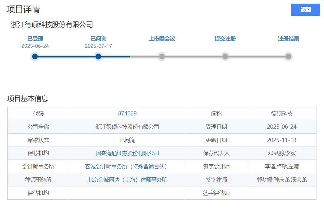 北交所官网信息显示,11月13日琼中预应力缓粘结钢绞线,浙江德硕科技股份有限公司(以下简称“德硕科技”)在北交所发布了上市申请的第二轮问询意见,涉及的主要问题有业绩增长持续性及客户合作稳定性 ,收入核查充分性,关联交易及资金往来情况等。