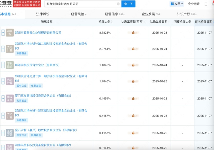 企查查显示,11月7日,超聚变完成新一轮投资人变更。新进股东包括郑州航空港先进计算一期创业投资基金合伙企业(有限合伙)、郑州航空港先进计算二期创业投资基金合伙企业(有限合伙)、郑州航空港先进计算三期创业投资基金合伙企业(有限合伙)、河南泓楷股权投资基金合伙企业(有限合伙)、金石汐智(嘉兴)股权投资合伙企业(有限合伙)、厦门惠友豪祺股权投资合伙企业(有限合伙)、苏州芯联芯聚创业投资合伙企业(有限合伙)等10家机构。同时,多家老股东在本轮追加了投资。