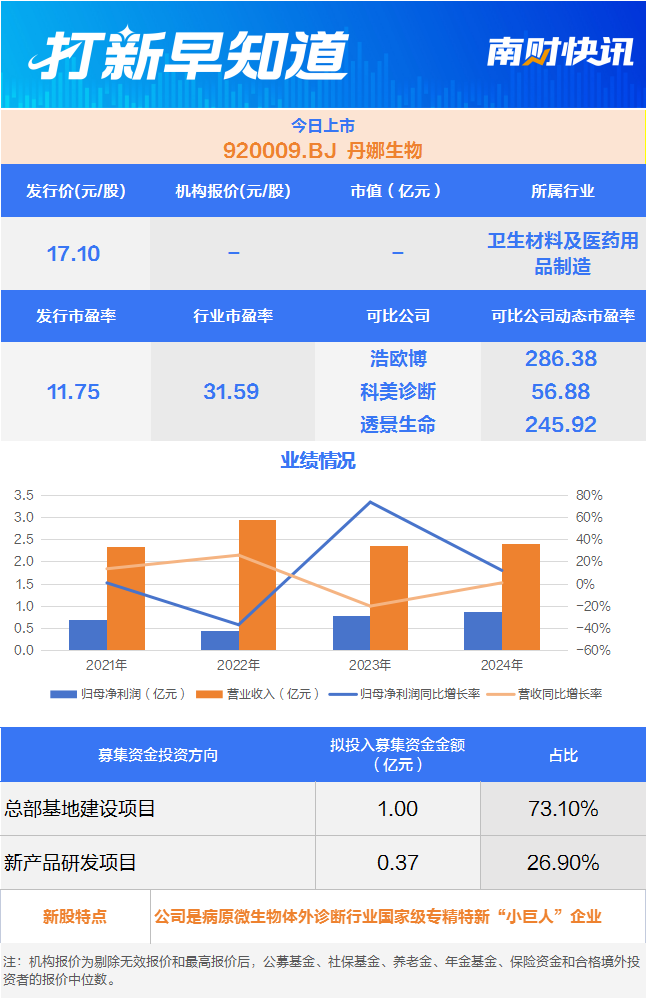 11月3日儋州预应力无粘结钢绞线,可申购北交所的北矿检测(920160.BJ),另有一只新股上市,同为北交所的丹娜生物(920009.BJ)。