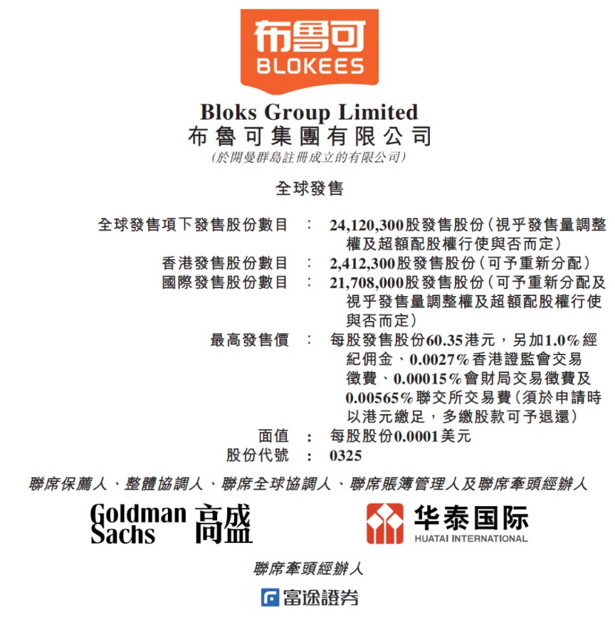 1月7日上午,布鲁可结束了在港公开招股。此次IPO,布鲁可拟发售约2412.03万股股份,其中在港公开发售占10%,国际发售占90%,另有15%超额配股权,每股发售价不超过60.35港元,每手买卖单位为300股。