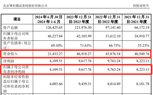 2021年至2023年,博科测试分别实现营业收入4.05亿元、4.59亿元、4.69亿元;归母净利润为8223.11万元、9763.24万元、9617.76万元。