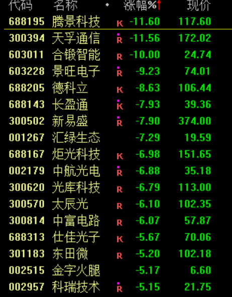 下跌方面,CPO概念股集体调整,天孚通信跌超10%,新易盛跌逾7%。