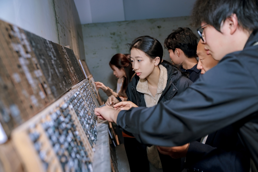 这个周末,展览特别推出沉浸式参观体验,观众在NPC带领下将穿越时空,成为铅与火时代的排字匠人,在车间师傅手把手指导下,完成拣字、排字、印刷全过程,体验非物质文化遗产铅活字拓版印刷技艺,将铅字印记永久珍藏。