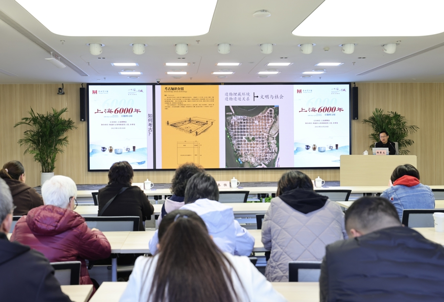 图文展右侧的视听教室,考古专家、文博学者郑秀文以《“地书”揭示上海6000年》为题,结合上海博物馆“考古上海”展,通过考古实证,娓娓道来上海6000年历史,解读“何以上海”的历史密码。“家门口就能听到这样专业的讲座,太贴心了。”观众席,陈云一边听一边做着笔记。了解到上海博物馆正在规划建设第三个馆——北馆,就在杨浦滨江,她很是开心:“建成后一定要第一时间去看看。”