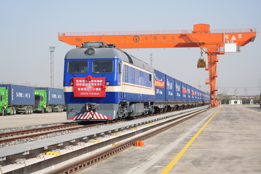 新民晚报记者今天从中国铁路上海局集团有限公司获悉,今天上午,首列装载着纺织品等货物的货运列车从张家港北站货场缓缓驶出,开往广东佛山市小塘西站,标志着该货场正式投入运营。作为沪苏通铁路沿线货运车站(货场),张家港北站货场的开通不仅为区域物流降本增效、沿线产业转型升级提供积极助力,更为长三角一体化高质量发展注入强劲动能。